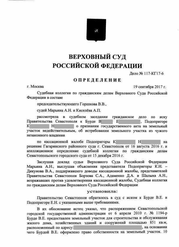 Я читала на сайте ВС, суды всех инстанций не рассмотрели вопрос о применении срока исковой давности, по заявлении стороны, и многое другое. Очень хорошее решение. В Крыму вздохнут, там реально беспредел с землей.