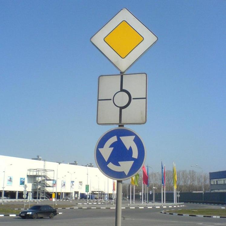 Во-вторых, правила изменили, а знаки на дорогах остались старые. Если перед кругом стоят знаки, устанавливающие приоритет проезда перекрестка для въезжающих на него (их еще не убрали и не собираются), руководствоваться этими знаками приоритета или новым правилом о приоритете того, кто на кругу уже находится?