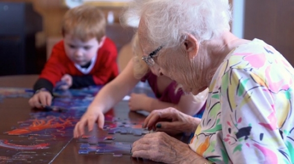 "Это лучшая идея за последние десятилетия!"- говорят местные жители. Речь идет об удивительном доме в Сиэттле, штат Вашингтон: под одной крышей находится детский садик и дом для престарелых. У маленьких детишек есть потрясающая возможность пообщаться со старшим поколением, научиться у них разным вещам, получить море внимания со стороны взрослых, в то время как пожилым людям общение с детьми приносит огромное удовольствие, а также стимул не унывать и радоваться жизни.Providence Mount St. Vincent вмещает 400 пожилых жителей, а также несколько десятков детишек, которые стали частью программы Международного Обучающего Центра (ILC). С 1991г компания ILC старается дать возможности детям и взрослым взаимодействовать друг с другом. Пять дней в неделю малыши приходят в гости к старшему поколению, чтобы вместе заниматься музыкой, танцами, искусством, рассказывать друг другу истории, готовить обед и делать еще много других увлекательных вещей. У детей таким образом оказывается много любящих бабушек и дедушек, они лучше понимают процесс взросления и старения, а пожилые жители центра вновь чувствуют свою нужность, востребованность, они рады поделиться своим опытом и любовью.