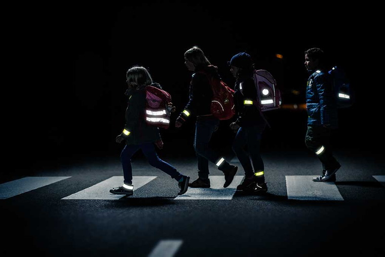 -чем больше световозвращающих элементов на одежде ребенка, тем он заметнее для водителя в темное время суток;