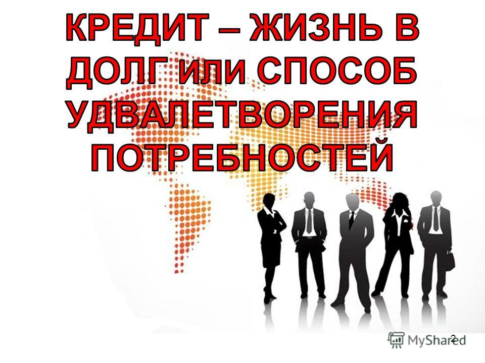 Современный цивилизованный мир уже не мыслит своей жизни без долгов, без использования всевозможных ссуд, ипотек и кредитов. Кредит – это система экономических отношений в связи с передачей от одного собственника другому во временное пользование ценностей в любой форме (товарной, денежной, нематериальной) на условиях возвратности, срочности, платности.