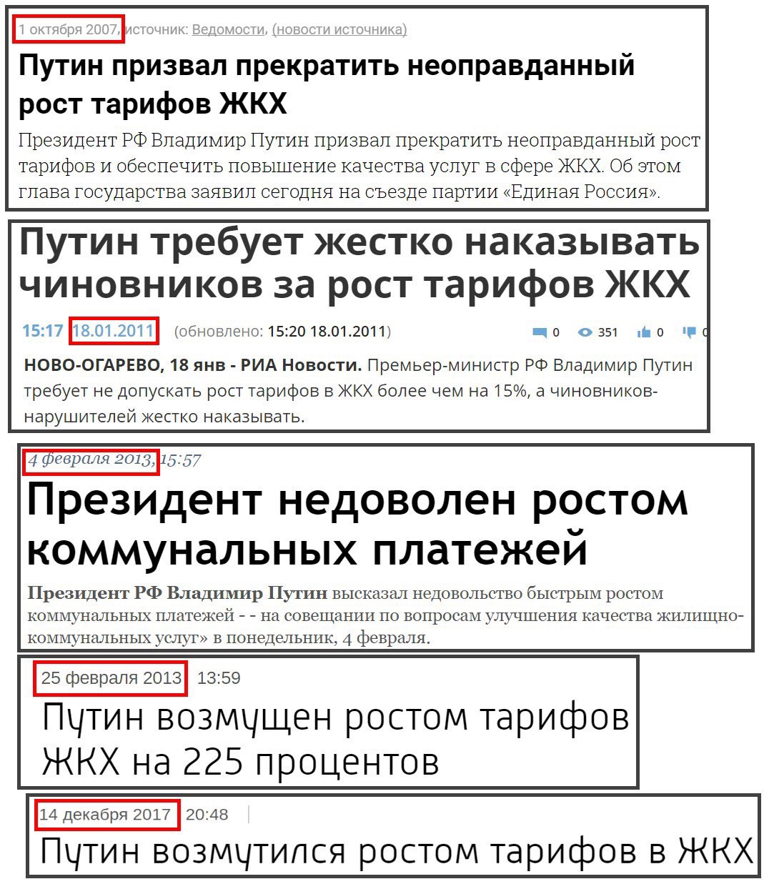 2011 (январь) Путин требует жестко наказывать чиновников за рост тарифов ЖКХ.