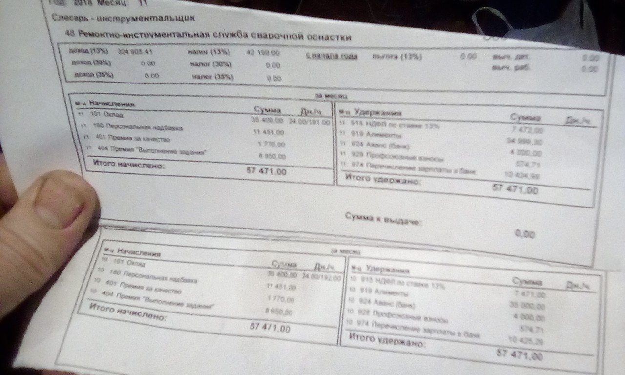 У меня около 58000 в месяц. Чистыми 50000, алименты плачу 17000, была задержка по выплате, так снимали по 35000 в месяц!
