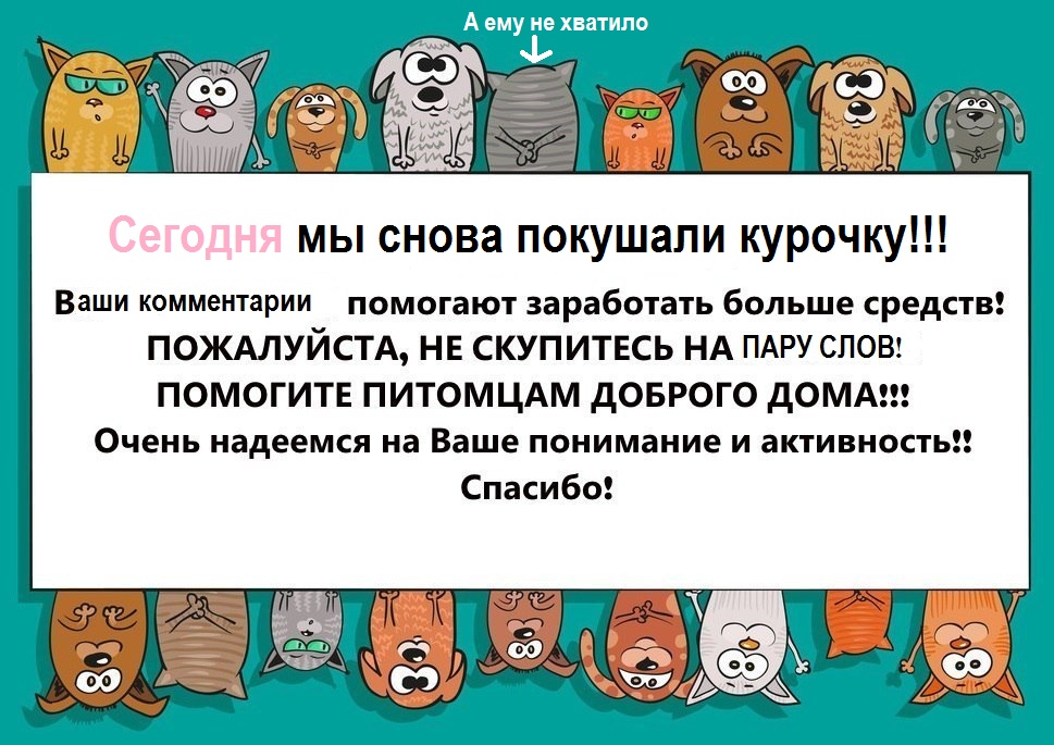 Чем больше комментариев - тем больше корма для животных можно купить. Животным нужна ваша помощь! Делайте репосты в социальных сетях, для этого есть специальные кнопки.