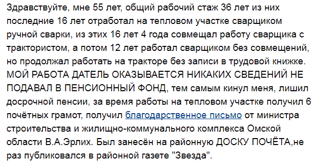 Здравствуйте Николай , я Иван , работодатель никаких сведений не подавал , страховые пенсионные взносы не выплачивал, даже не указал мою специальность, и за этого в пенсионном мне отказали в досрочной пенсии , хочу задать вопрос форумчанам, стоит ли судиться с работодателем и пенсионным фондом?