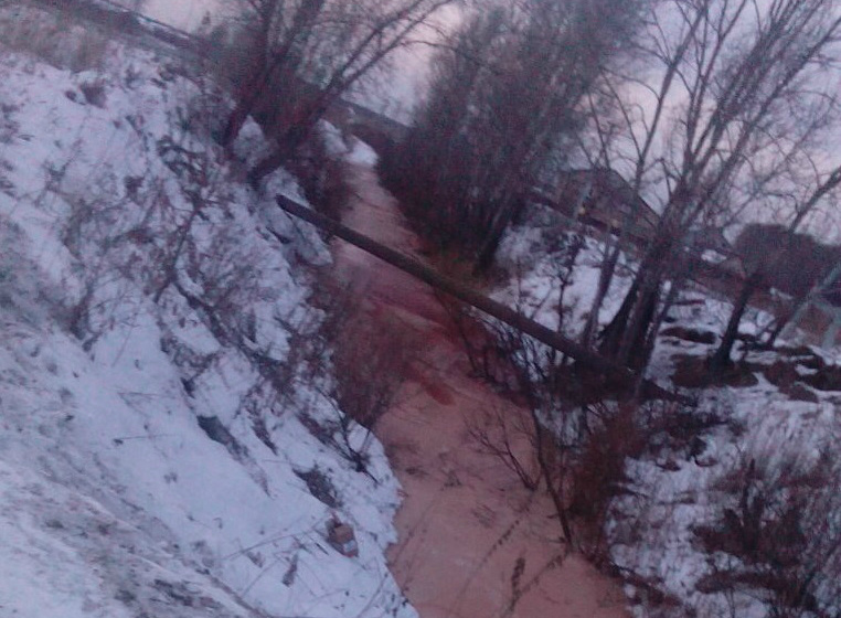 Река Молчанка в Тюменской области окрасилась в ярко красный цвет. Фотографии появились в интернете 29 января.
