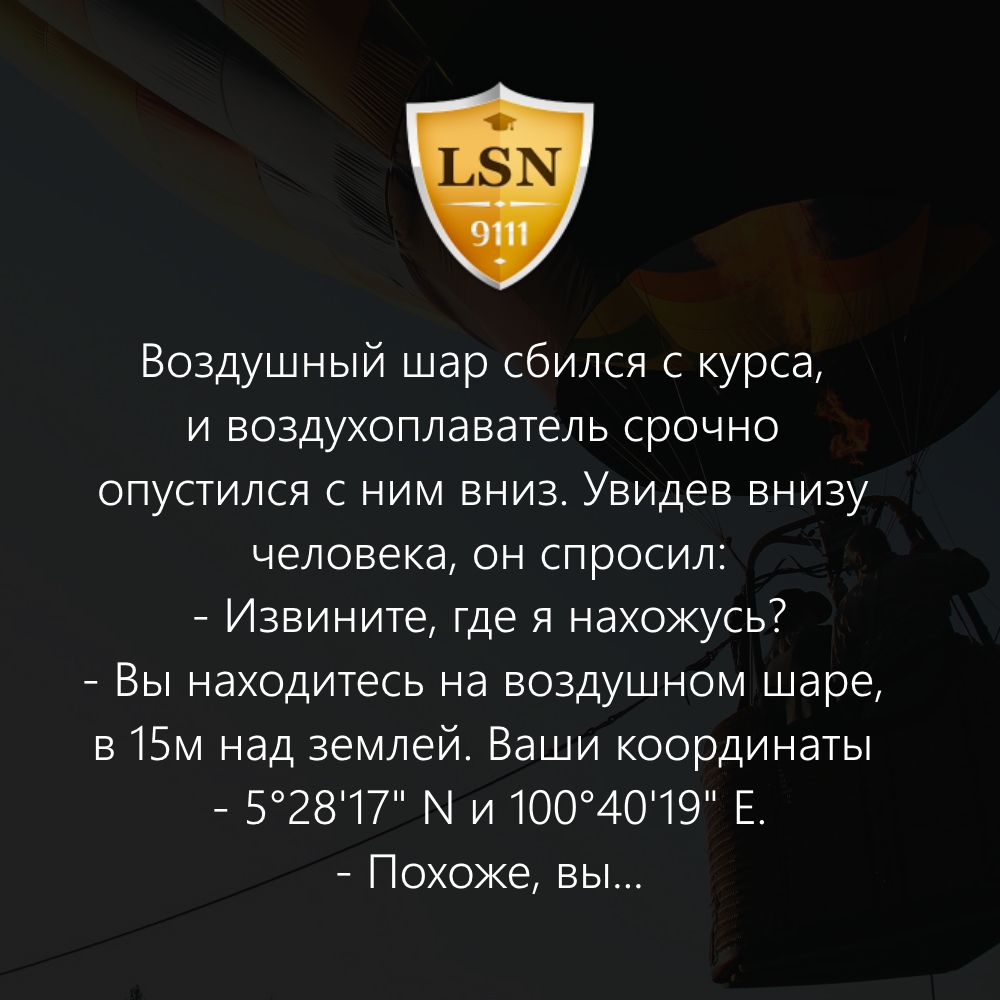 Воздушный шар сбился с курса, и воздухоплаватель срочно опустился с ним вниз. Увидев внизу человека, он спросил: