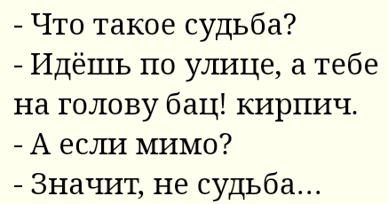Шел мужчина по улице, а на голову ему свалился кирпич. Сердобольные прохожие собрались вокруг - возмущаются: - По улице уже страшно ходить - кирпичи на голову валятся!!!