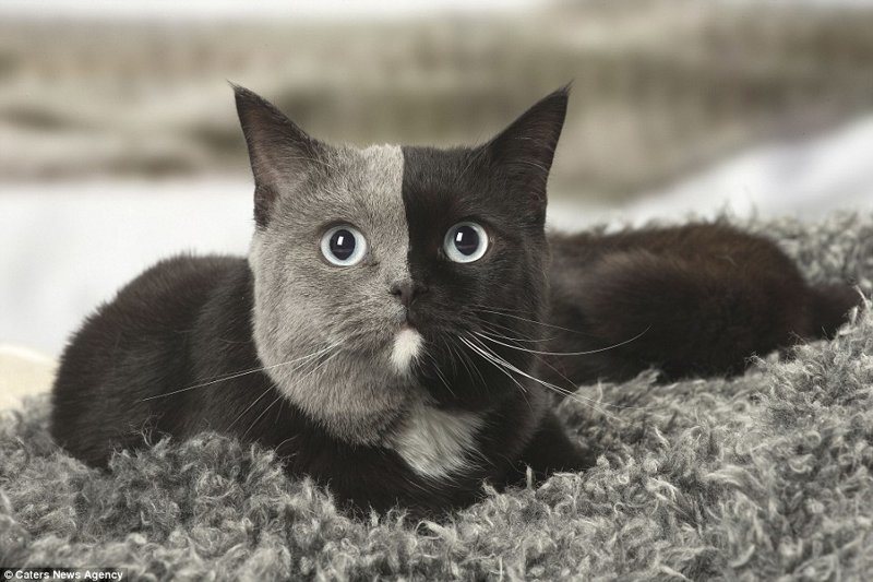 Очаровательная кошка породы британская короткошерстная из Франции покорила интернет своим уникальным окрасом! Мордочка кошки состоит из двух половинок - серого и черного цветов. Таких животных называют "химерами", и их необычная внешность является результатом определенных генетических процессов.