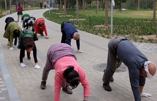 Один из них, учитель Дунь, уже шесть лет ходит в парке на четвереньках. Он считает, что благодаря этому в свои 90 лет не ощущает груза прожитых лет и чувствует себя совершенно здоровым. В древности китайские врачи рекомендовали своим пациентам имитировать передвижение различных животных, снимая напряжение с позвоночника, включая в работу те группы мышц, которые редко используются при обычной ходьбе.
