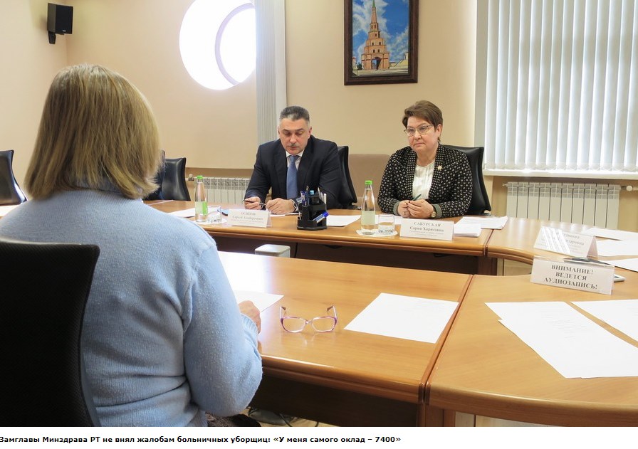 ЗАМГЛАВЫ МИНЗДРАВА РТ НЕ ВНЯЛ ЖАЛОБАМ БОЛЬНИЧНЫХ УБОРЩИЦ: «У МЕНЯ САМОГО ОКЛАД – 7400»