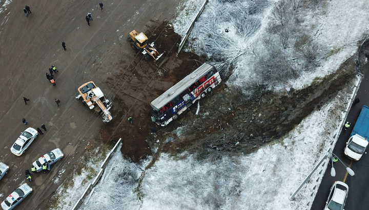 Авария произошла около 7 часов утра на 34-м километре автомобильной дороги М-4 "Дон". Автобус Neoplan врезался в легковушки Ford и Mitsubishi, а затем пробил ограждение, съехал в кювет и перевернулся. В результате травмы получили 11 человек. Все пострадавшие были доставлены в больницу.