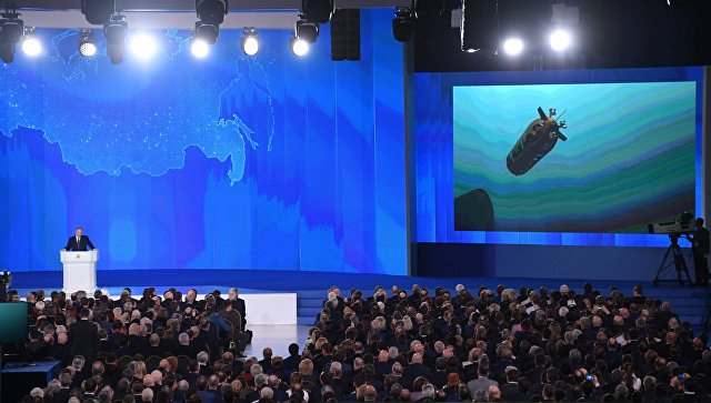 Президент РФ Владимир Путин выступает с ежегодным посланием Федеральному Собранию