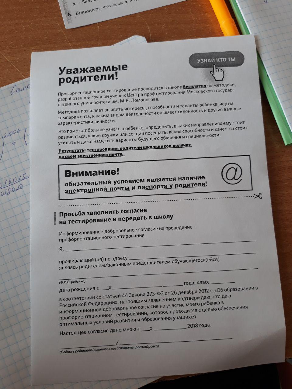 На собрании родителям настоятельно рекомендовали быть на тестировании, также сообщили о необходимости иметь при себе паспорт.