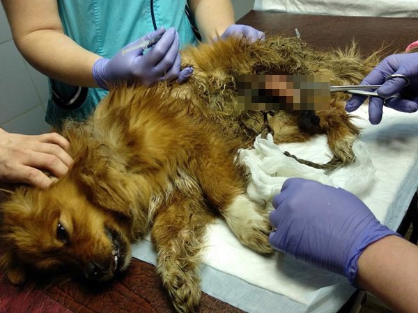 То, что девушка увидела, было больше похоже на кадры из фильма ужасов: щенок был весь в крови, а задняя лапа вовсе сгнила, источая зловонный запах. Конечность была обмотана проволокой и веревкой, которая тянулась до самой шеи, обвивая ее. Впечатлительная девушка сразу же позвонила в приют «Святобор», умоляя спасти животное.