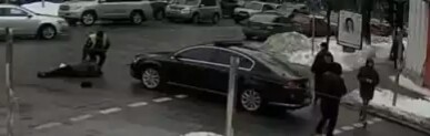 ДТП произошло в 12:40 на пересечении улиц Шелковичная и Институтская. На кадрах видно, что пожилой мужчина бросился на другую сторону проезжей части на запрещающий сигнал светофора. Водитель черного Volkswagen, возглавлявшего президентский кортеж, успел среагировать на появление пешехода, но избежать столкновения не получилось.