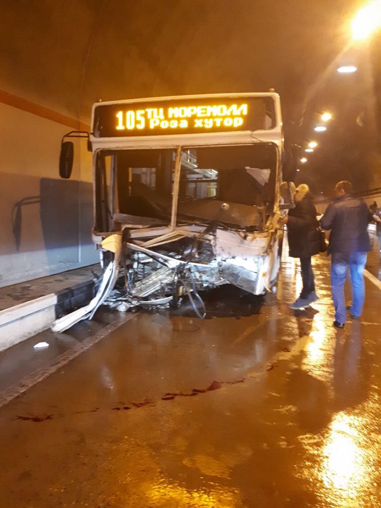 Водитель "Лексуса" погиб, протаранив рейсовый автобус на трассе в Красную Поляну