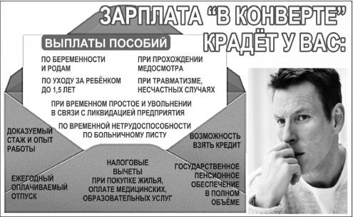 тут работодатель на высоте-не хочешь в конверте, за воротами таких как ты готовых на конверт хоть пруд пруди.