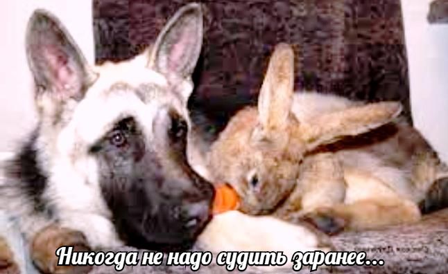 – Нет же, подумай, моя овчарка – щенок, и твой кролик еще ребенок. Они будут расти вместе, станут друзьями. Проблем не будет.