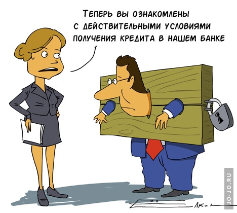 И все эти условия при заключения договора банк завуалирует, как наперсточники на рынке. Составляет текст договора эзоповским языком, включая мелкий шрифт. Скоро дойдут до того, что будут писать текст договора специальными чернилами, которые требует специального проявления. Почему в торговле следят за разницей закупочных цен и розничной торговле. Разница не должна превышать не более 25%. А в банковской сфере 3-4 раза, то есть 300-400%.
