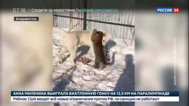 В зоопарке Владивостока овчарка взяла на воспитание леопарда