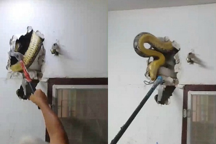 13 марта Сомчаи Субданг, 45-летний мужчина из Бангкока, мирно смотрел телевизор у себя дома, но вдруг услышал странный скрежет, который явно исходил из стены его дома. Стена выходила на улицу, соседей за ней не было — а значит, источник звука находился внутри. Приложив ухо к стене, Сомчаи услышал шипение и понял, в чём дело. Он в ужасе отскочил и вызвал спасателей, пишет Daily Mail.