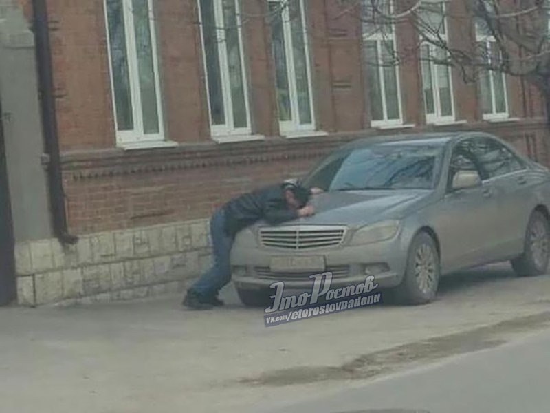 "Шел на выборы и немножко устал", "Просто приуныл", "Он просто любит свое авто. Обнимашки", "Мужик просто авто выставил на "авито", жизнь заставила, поэтому это слезы", "Наступили холода и под капот погреться могут залезть беззащитные бомжи. Будьте бдительны", "Любовь с первого взгляда", "Увидел свою бывшую тачку", - выдвигали свои версии подписчики паблика "Это Ростов-на-Дону".