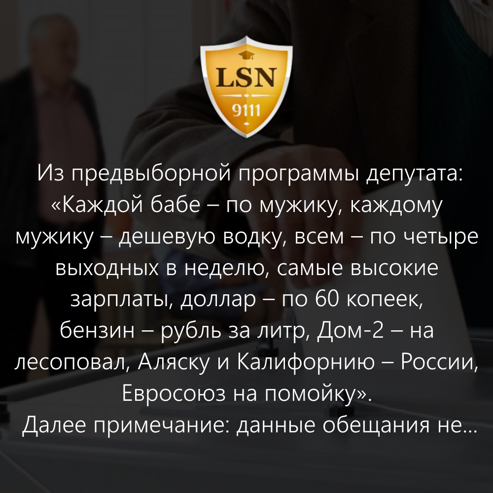 Так примерно и выглядят предвыборные обещания с"ставленников" народа. Только память у них короткая. Дорвавшись до власти действуют по принципу" свой карман ближе"