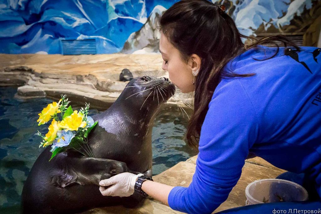 Нерпы задули свечи на праздничном торте в Приморском океанариуме