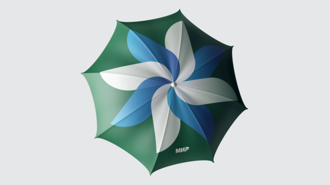 Разработкой нового оформления бренда «Мир» занималось агентство Graphit, в его основу легло четверостишие «Лети, лети лепесток, через запад на восток» из мультфильма «Цветик-семицветик». В качестве основного элемента нового логотипа был выбран лепесток.