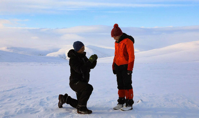 Необычное место для того, чтобы сделать предложение любимой девушке, выбрал сингапурец Джошуа Вонг. Он вместе с Джесс приехали на Ямал с составе международной группы для участия в фоторуре. Парень заранее купил кольцо, чтобы вручить его любимой в самом необычном месте. Причем, вся группа знала, что Джошуа готовит сюрприз для Джесс, но стойко не пробалтывалась, держала в секрете. В выборе места для признания выбирала вся команда - члены группы из Бельгии, Швейцарии, Сингапура и Голландии. Наконец, место найдено: 670 метров над уровнем моря,-28 градусов и пронизывающий ветер. Но Джесс понравилось, и она сказала «да».-Дни, предшествующие помолвке, мы провели вдали от цивилизации. Прикоснулись к жизни кочевников, жили в чуме, неделю пасли меж гор 800 оленей. Ледяная рыбалка, рубка дров, растопка льда для «изготовления» воды, напиток из крови оленя... и все это в жестком климате – от 15 до 30 градусов по Цельсию. В течение недели мы переместились в другое измерение! - цитирует восторженную запись Джесс ИА «Север-Пресс».