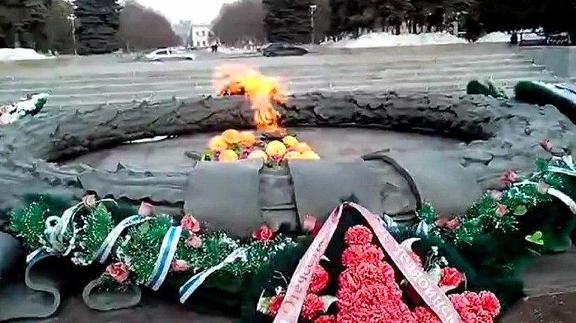 Видео как Женщина бросила траурный венок в Вечный огонь в центре Челябинска !