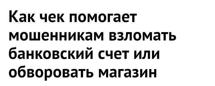 В России появился новый вид финансовых махинаций, жертвой которых могут стать абсолютно все. Чтобы взломать банковский счет и похитить деньги, преступникам достаточно иметь лишь ваш чек. Мошенники просят отдать его прямо в магазине, и выглядит все очень безобидно. Однако потом с карточки покупателя таинственным образом начинают исчезать деньги, но куда большие потери несут магазины.