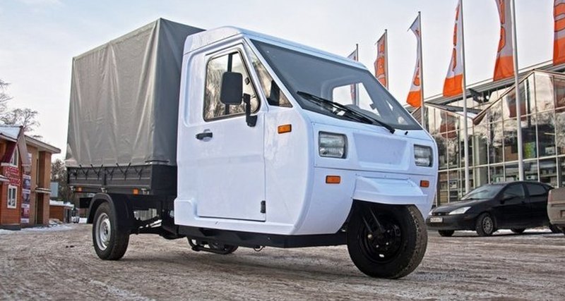 Грузоподъемность вполне серьезная — 700 кг. Груз предлагается размещать на бортовой платформе размером 2 на 1,5 метра. В бортовом исполнении трёхколёсный грузовичок стоит 250 000 рублей, в тентованном — 270 000. За полноценный фургон попросят уже 300 000 рублей. Для управления трициклом требуется водительское удостоверение «легковой» категории B.