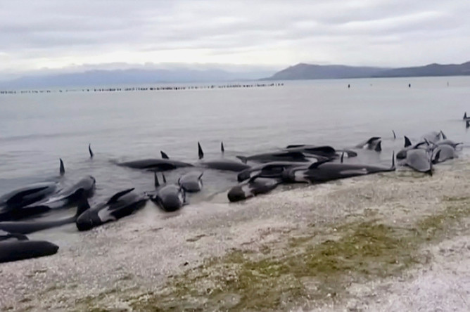 В Австралии на берег выбросились более 150 дельфинов вида короткоплавниковая гринда (Globicephala macrorhynchus), сообщает The Sydney Morning Herald.