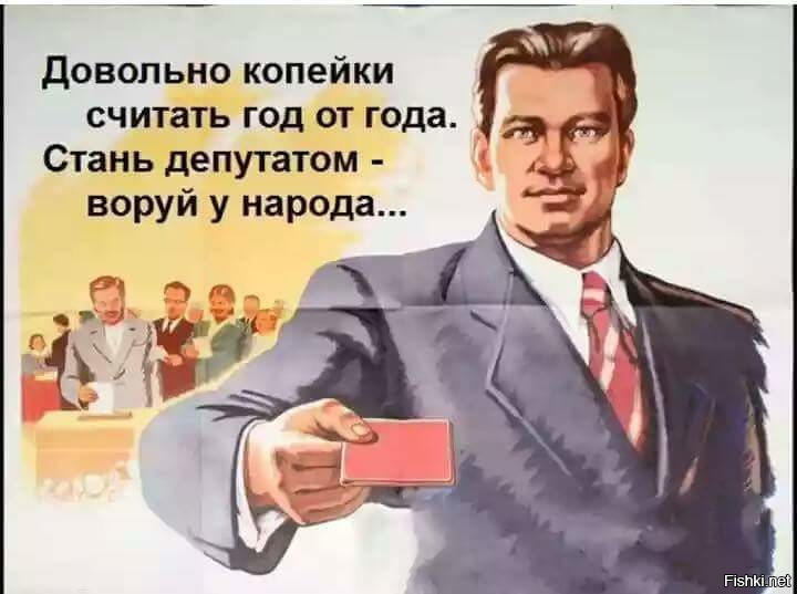 Я поражаюсь человеческой жадности. Я понимаю, что каждый человек стремиться получить от жизни все: жилье, автомобиль, хорошее питание, образование, возможность путешествовать и т.д. Но всему есть предел. Я предела не вижу у наших слуг народа. Поднимая им заработную плату в несколько раз, В.В. Путин в свое время сказал, что это делается для того, чтобы у них не было соблазна брать взятки. Уважаемый Владимир Владимирович, ну как, взятки никто больше не берет? С коррупцией во власти покончено? Нет, как брали, так и берут. Соответственно, необходимо вернуть их заработную плату на прежний уровень. Кроме того, Владимир Владимирович, вы уже измотали своих граждан новыми налогами. У вас шикарная возможность пополнять бюджет за счет проворовавшихся чинуш или взяточников. Попался - все имущество его и его родственников до 7-го колена конфисковали, все вопрос с дефицитом бюджета решен, причем не на один год. Я думаю, что это справедливо.