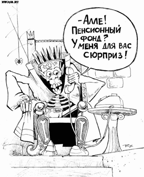 Поговорим о пенсиях и пособиях. То, что в ближайшее время, как в том анекдоте: "Ученые доказали, что человек может сохранять работоспособность до 95 лет. Спонсор исследований Пенсионный фонд России", люди будут быстрее умирать, чем доживать до пенсии, это и так понятно. То, что пенсии у нас мизерные (я не говорю о пенсии чинуш), с этим тоже многие столкнулись. То, как помогает наше правительство родившемуся и подрастающему поколению, то это просто слезы. Кроме того, человек работал, потом умер, не дожив до пенсии, а его причитающуюся пенсию захапал ПФР.