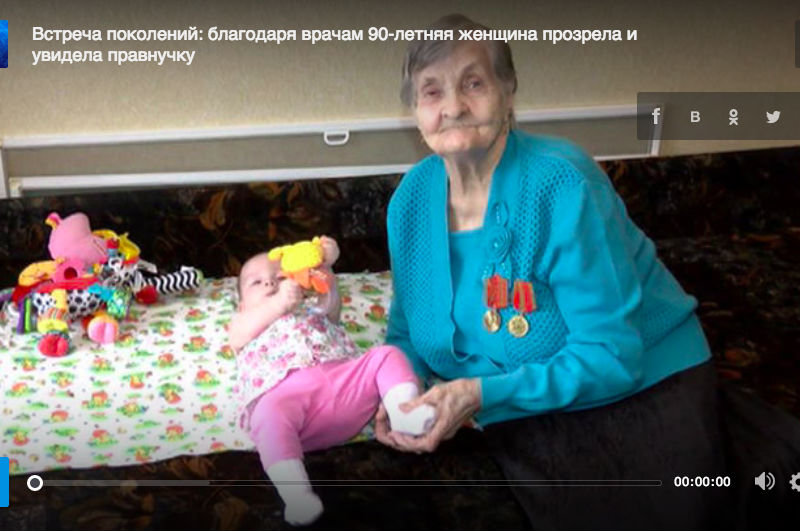 Вновь увидеть мир смогла 90-летняя Валентина Моравская из Тюмени. Местные офтальмологи провели сложнейшую операцию ветерану Великой Отечественной войны. Пожилой человек не видела 10 лет из-за перезрелой катаракты и практически уже смирилась с тем, что так и умрет без возможности снова увидеть родные лица, небо, снег, цветы. Но страстное желание видеть появилось, когда родилась шестая правнучка - Юленька. Вот тогда Валентина Андреевна и решилась на операцию. Причем, семья не раз обращалась в больницы, но нигде не давали гарантию. А врач-офтальмолог ОКБ №1 Григорий Симоненко провел сложную операцию и вернул ветерану возможность видеть.«Юленька, ты попала ко мне на ручки. Я тебя впервые вижу. Где твои глазки»? – не сдерживала радости от первой встречи с правнучкой прабабушка. После того, как Валентина Андреевна снова смогла видеть, она сразу же начала строить планы на будущее. Теперь вот ждет не дождется, когда малышка Юля начнет ходить. Моравская пообещала правнучке, что будет держать ее за руку и поможет познакомиться с этим прекрасным миром, который она вместе с другими смогла сохранить для потомков, сообщают «Вести».