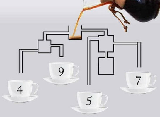 Это никакая не головоломка. Сегодня выпускают кофемашины, умеющие готовить разные сорта кофе: просто черный; кофе со сливками;, кофе с молоком; кофе с добавками из корицы или шоколада и т.д. В зависимости от рецепта, машина автоматически сама решает откуда что заливается из ингредиентов, где смешивается и куда выливается готовый продукт.