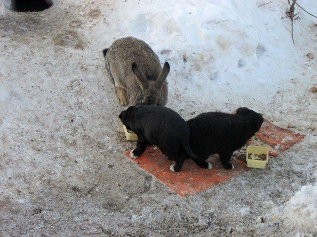 Так же нашелся и хозяин кролика, но пока всех щенков не заберут, хозяин сказал, что забирать кролика тоже не будет!