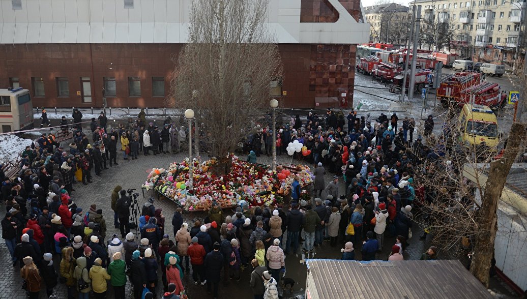 Пожар в четырехэтажном торговом центре «Зимняя вишня» в Кемерово произошел в воскресенье. Очаг возгорания находился на верхнем этаже, где расположены несколько кинозалов и детские игровые зоны с аттракционами. По последним данным, погибли 64 человека. Среди них много детей.