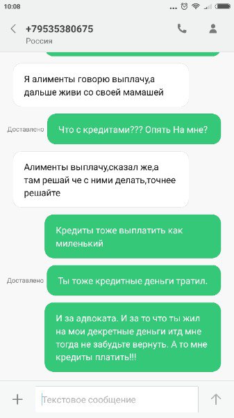 Кредитную карту он брал когда я засыпали с ребёнком. Может вы алиментщик? Че то уж много негатива. Я вам помоему перестала переписку. Где он требует суда и развода. И говорит о том что он кредиты выплачивать не будет