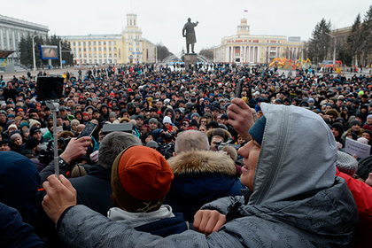 Митинг на центральной площади Кемерова начался утром во вторник, 27 марта. В нем приняли участие несколько тысяч человек, многие из них держали в руках фотографии детей. Толпа потребовала от чиновников рассказать правду о пожаре, а от губернатора области Амана Тулеева — уйти в отставку. В ответ Тулеев назвал собравшихся горсткой «бузотеров».