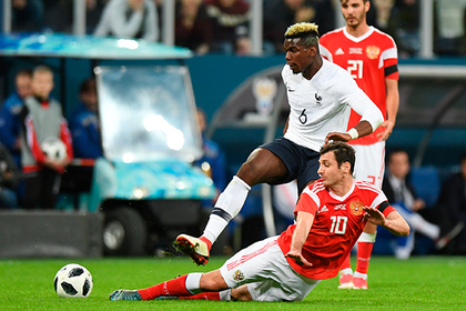 Встреча состоялась во вторник, 27 марта, на стадионе «Крестовский» в Санкт-Петербурге и завершилась со счетом 1:3. На 40-й минуте счет открыл форвард французов Килиан Мбаппе, в начале второго тайма Поль Погба удвоил преимущество соперника. На 68-й минуте нападающий Федор Смолов отыграл один мяч. На 83-й минуте Мбаппе оформил дубль и установил окончательный счет.