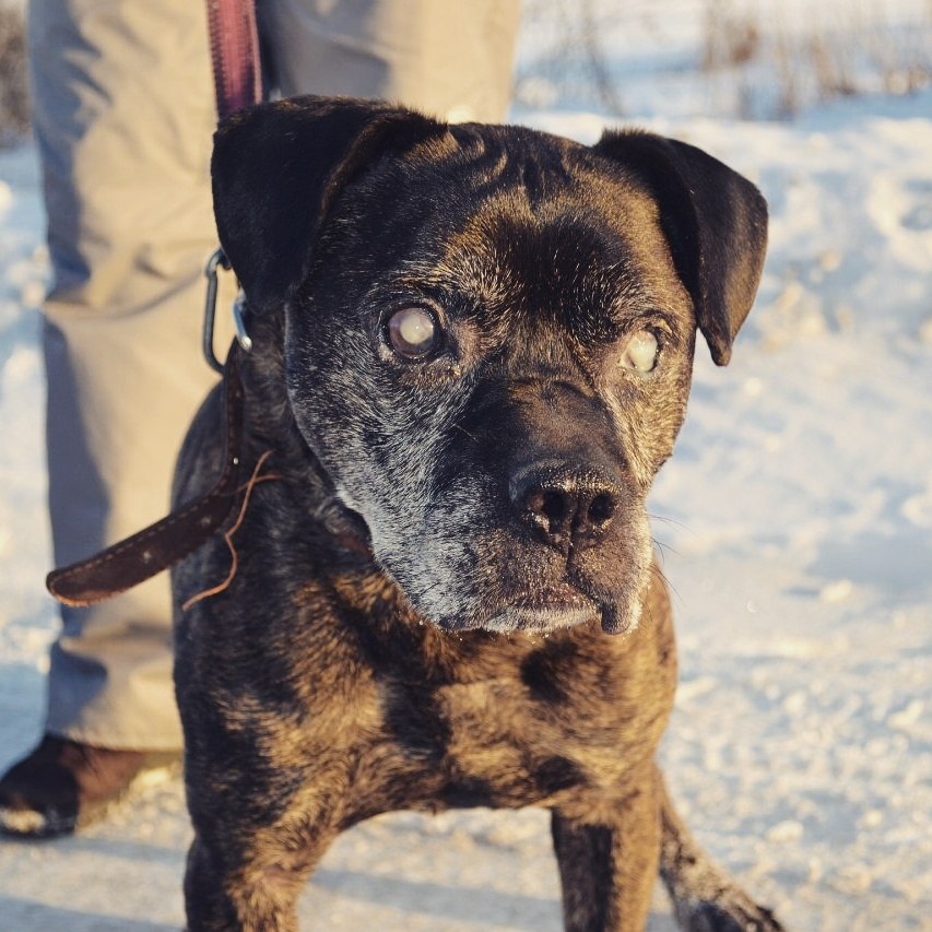 Так и началось это утро... Выпуская собак на выгул, я увидела, что Тимоше плохо... Тимоша это метис стаффорда, живший у нас уже несколько лет. Он каким то чудом вышел из леса к людям. Абсолютно слепой, он шел только по запаху и слуху. Как он оказался один в лесу? Почему он ослеп? Мы можем только гадать. Пристроить такого пса практически нереально, поэтому Тимоша приехал к нам. Он прекрасно выучил все предметы, стоящие на его пути, знал каждую ямку и ступеньку и двигался вполне свободно. Тимоша не испытывал никаких проблем из-за отсутсвия зрения и считал нас своей семьей.