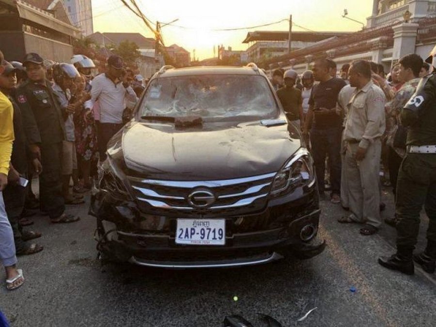 В Камбодже автомобилист стал виновником ДТП, в котором пострадал водитель мопеда и несколько других машин, а затем попытался скрыться. Но толпа свидетелей окружила машину и учинила самосуд. Пока прибыла полиция, авто виновника успели основательно забросать камнями.