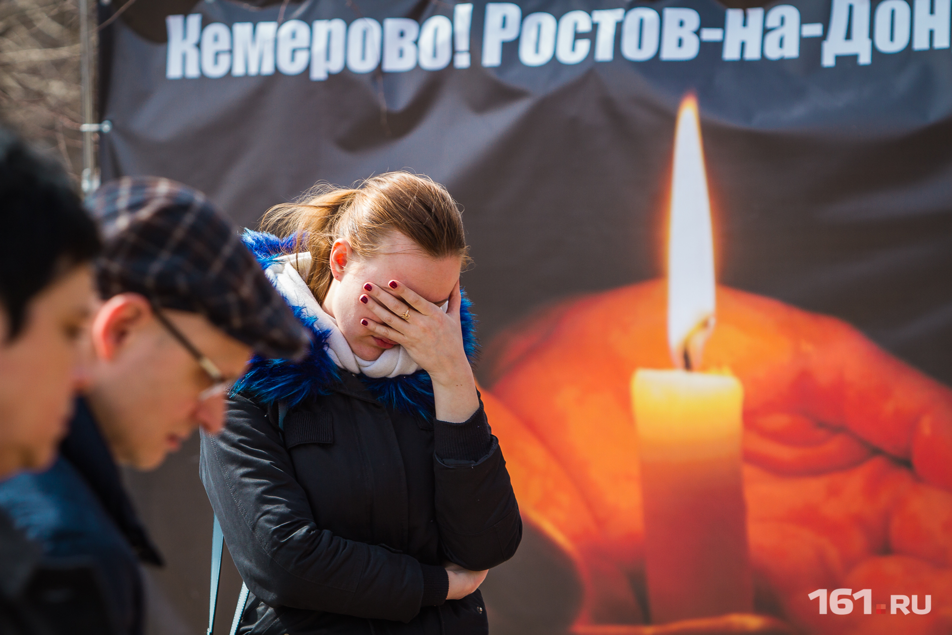 Сегодня, 27 марта, в донской столице прошел митинг, посвященный памяти жертв трагедии в кемеровском торговом центре «Зимняя вишня». Ростовчане собрались на пересечении Большой Садовой и Театрального проспекта возле памятника «Мать и дитя». Здесь установили два баннера с надписью «Кемерово! Ростов-на-Дону с тобой. Соболезнуем». Рядом с ними люди возложили цветы и игрушки.