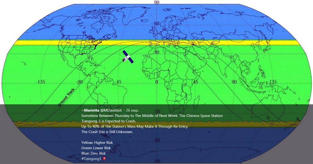 Самой возможной зоной падения обломков является район между 43-м градусом северной и 43-м градусом южной широты. «AST-NEWS.ru – Астраханские новости» подчёркивает, что в эту область входит и Астраханская область, для которой существует повышенная угроза.