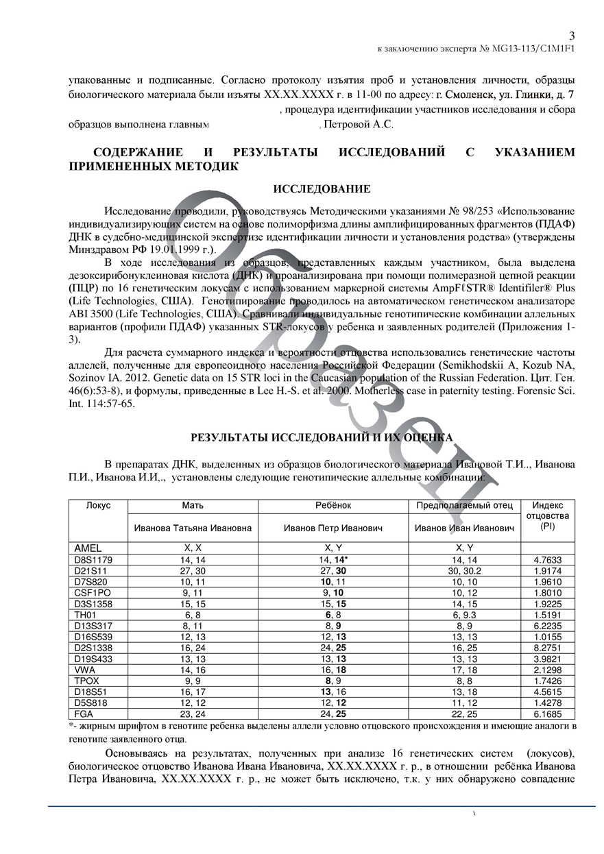 - для полного трио (мать - ребенок - предполагаемый отец) при условии, что истинность другого родителя считается бесспорной: не ниже 99,90% (рассчитываемый как Байесова вероятность отцовства/материнства);