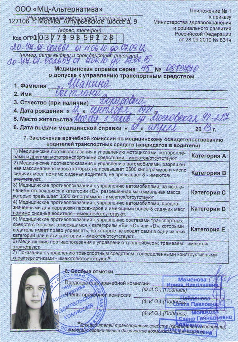В таких распространенных случаях, как утеря удостоверения, смена фамилии или места регистрации и жительства, получения новой медицинской справки не требуется. Говоря иными словами, отвечая на вопрос, нужна ли медицинская справка при замене водительских прав, можно отметить, что она требуется только в особых ситуациях. Но-ли менять медицинскую справку для вождения легкового автомобиля?